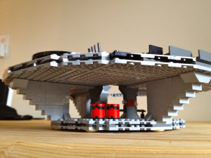After getting a good night’s sleep, I went back at it. Five more hours and I’d hit the two-thirds-done point. By now, the structure was starting to take shape and the individual sections were becoming clear. I could tell that the bottom section, for example, would be the Luke-Leia rope-swinging part while the second floor was clearly going to be the Emperor’s throne room.